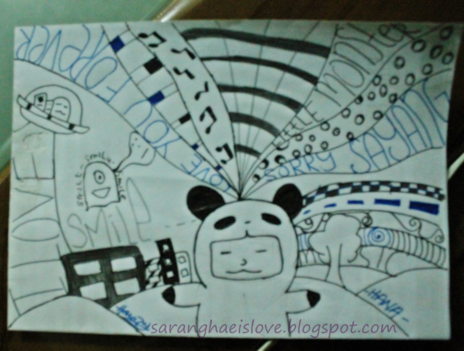Hah? Amacam? Buruk kan? OMG!!! Hana rase doodle art nie yang paling hodoh and buruk sekali dalam history of doodle art... Hhahahah... But, i can be proud sebab ini first time Hana buat benda nie... And honestly, i'm not an art people... Hee...